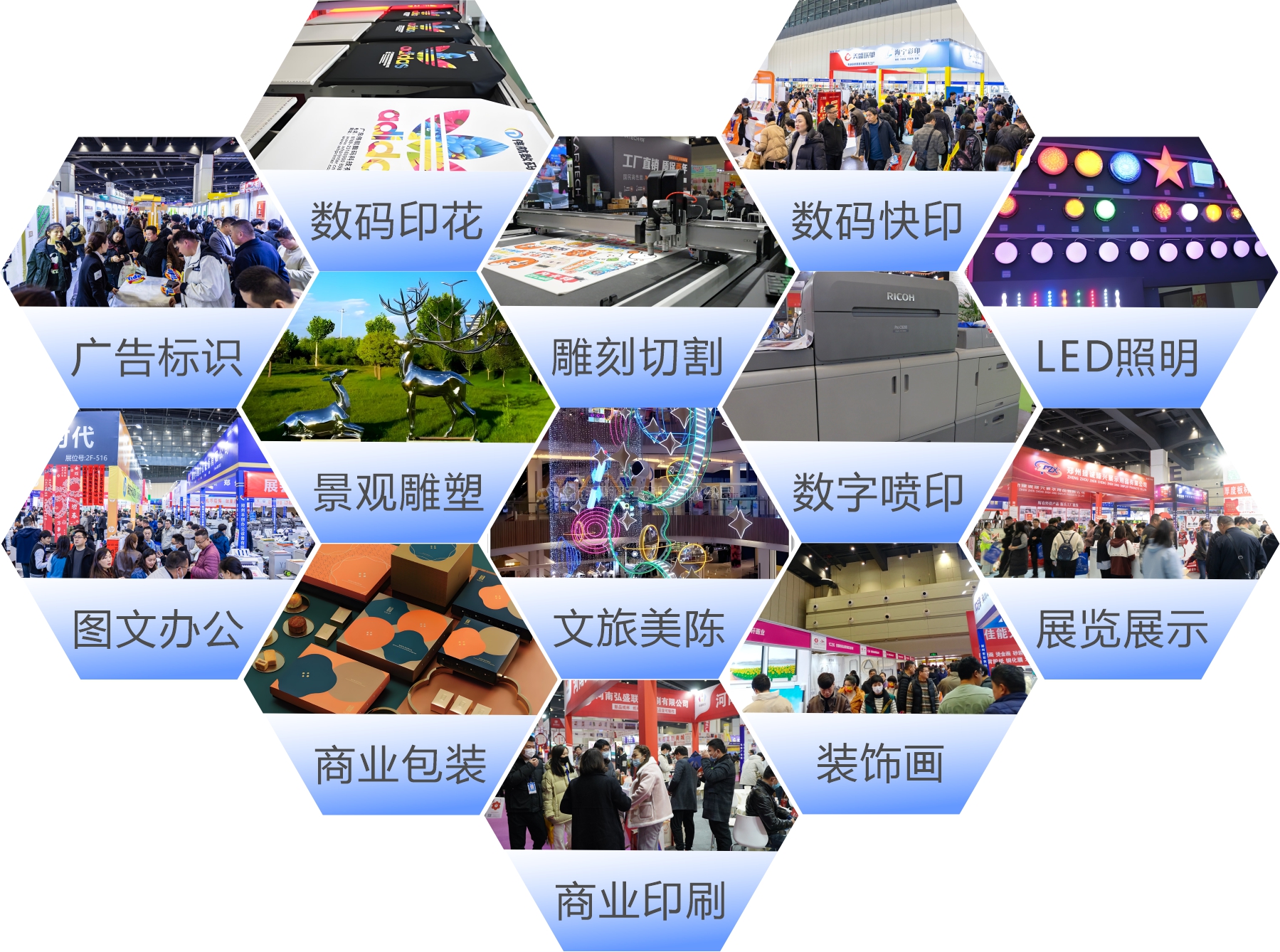 展會(huì)展品范圍涵蓋了廣告標(biāo)識(shí)、LED照明、噴印、印花、雕刻切割、圖文辦公、商業(yè)印刷與包裝、數(shù)碼快印、影像、裝飾畫(huà)與框業(yè),為眾多品牌進(jìn)入河南及中北部市場(chǎng)提供了機(jī)遇,更為河南及中北部市場(chǎng)帶來(lái)了全球采購(gòu)的絕佳平臺(tái)。